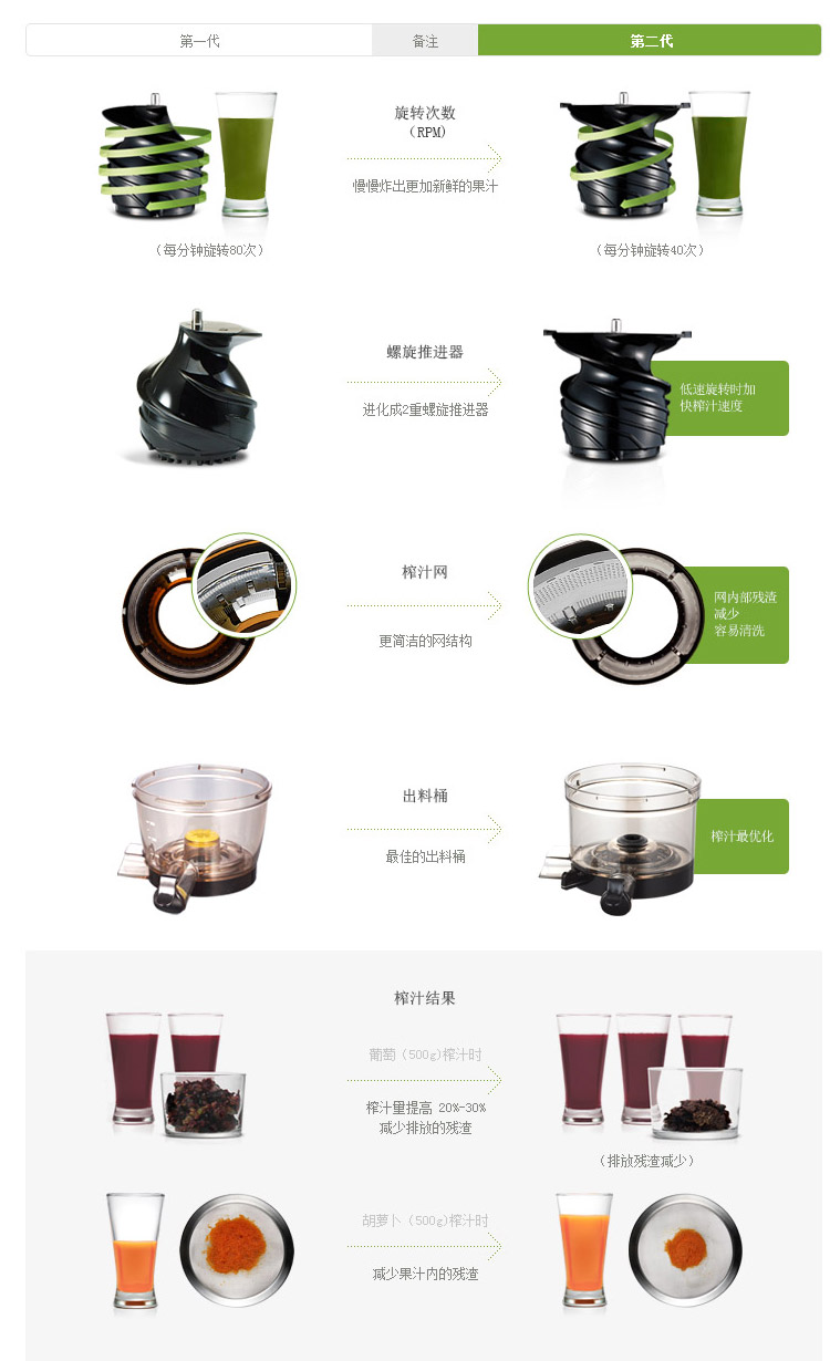 让全世界疯狂的低速榨汁技术是指解决了传统的榨汁机的锋利的刀片高速旋转过程中产生的热和氧化营养损失,改变破坏原味原营养的弊端,用低速的方式榨汁,不给水果和蔬菜任何冲击和摩擦,保持原汁原味原营养。