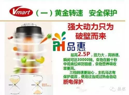 品惠生活超市食物搅拌器可以做到第一,全食全营养,健康原生态;2.5匹,30000转,1300W。瞬间击破细胞壁,使营养成分充分被人体吸收!