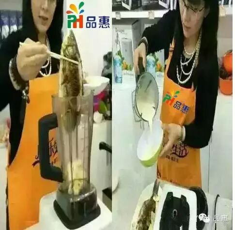 我们先把鱼洗干净在瓷晶锅里煎熟(加少量的生姜),然后再整条放到我们的搅拌机里面加上一点盐和开水,搅拌四分钟。就会变成非常美味的魚汤,所有骨头全部绞碎。非常细腻滑一丁点骨头都没有。完全没有腥味很鲜甜。
