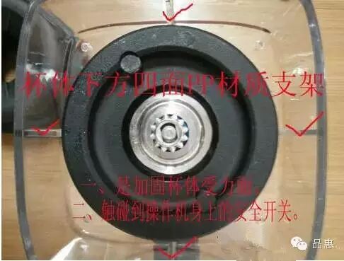 主机中的保护开关会因杯子未定位或调理杯提起 停止运作,起到保护作用。