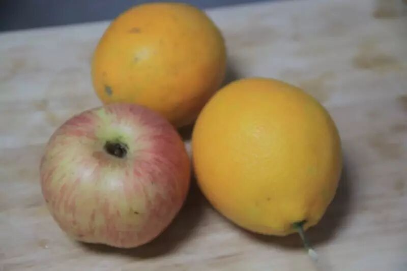 材料:两个橙子,一个苹果