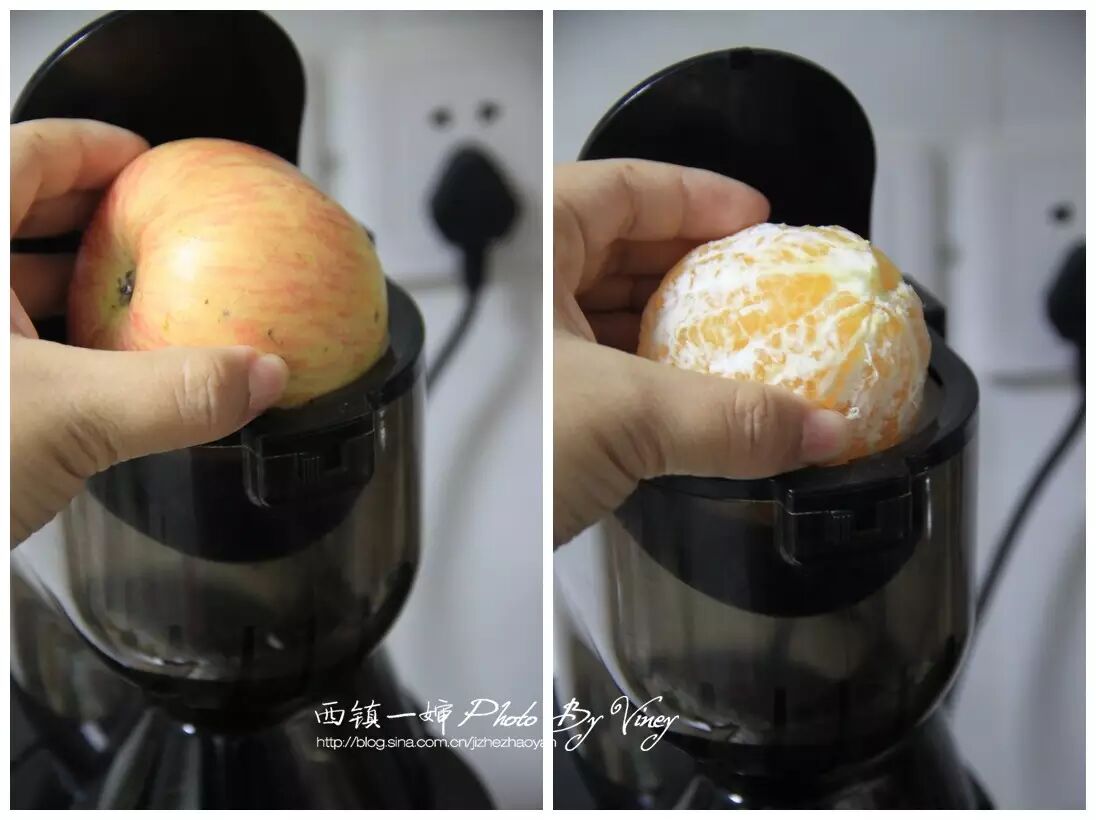 1、因为是整个水果放进去,所以橙子需要先去皮,苹果洗干净就可以了。