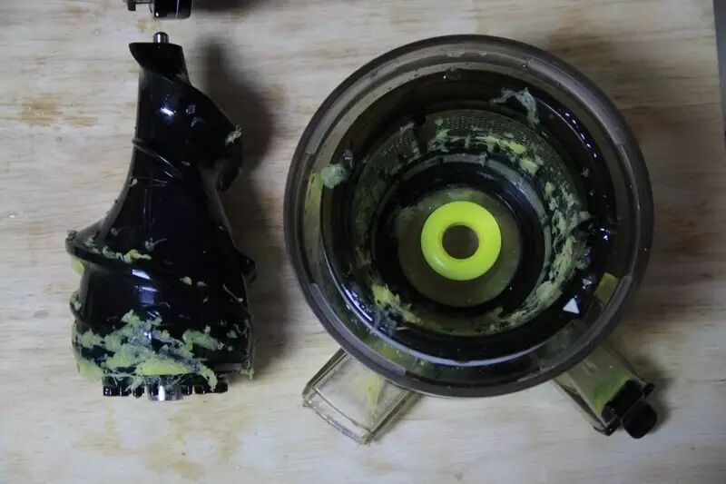 7、最后是转轴和外面的支架部分,转轴直接就可以冲洗干净,支架部分也是。只是用的时间长了以后,支架的底部凸起间以及黄色叶片(新款机器是黑色的)的缝隙处会有水果的色素沉淀,定期用小毛刷或牙刷清理下就可以了。