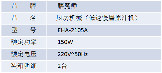 厨房机械(低速慢磨原汁机) EHA-2105A