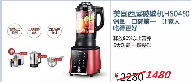 商品信息:美国西屋加热破壁机
