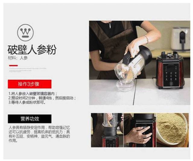 此外,还能研磨各种粉~人参啦~阿胶啦~超级多补品都能磨成粉,让营养来自更全面!