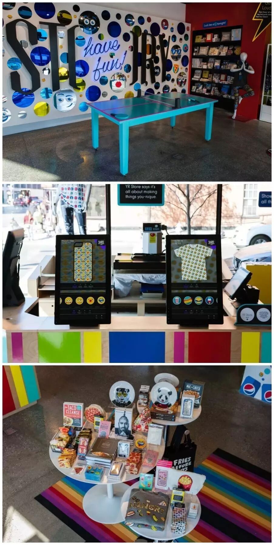 在2016年百事可乐推出emoji表情瓶的时候,也曾与Story合作。店铺布置的生动有趣,消费者可以在店里的互动站使用百事表情符号库为T恤和智能手机包装盒创作图案。同时,店内还会提供带有PepsiMoji的饼干、腰包、玻璃器皿等商品,活动期间每周五的“欢乐时光”会提供免费的食品及饮料。