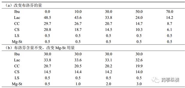 布洛芬(布洛芬25;巴斯夫,Ludwigshafen,德国)作为模型药物;一水乳糖(Lac)(FlowLac 100; Meggle, Wasserburg, Germany)作为赋形剂;结晶纤维素(CC) (Ceolus UF-702; Asahi Kasei Chemicals, Tokyo,Japan)作为粘合剂;玉米淀粉(CS)(NihonShokuhin Kako, Tokyo, Japan)作为崩解剂;轻质无水硅酸(LS) (Aerosil 200; Nippon Aerosil, Tokyo,Japan)作为助流剂;硬脂酸镁(Mg-St) (Mallinckrodt, Dublin, Ireland)作为润滑剂。