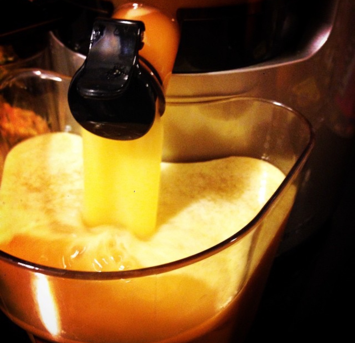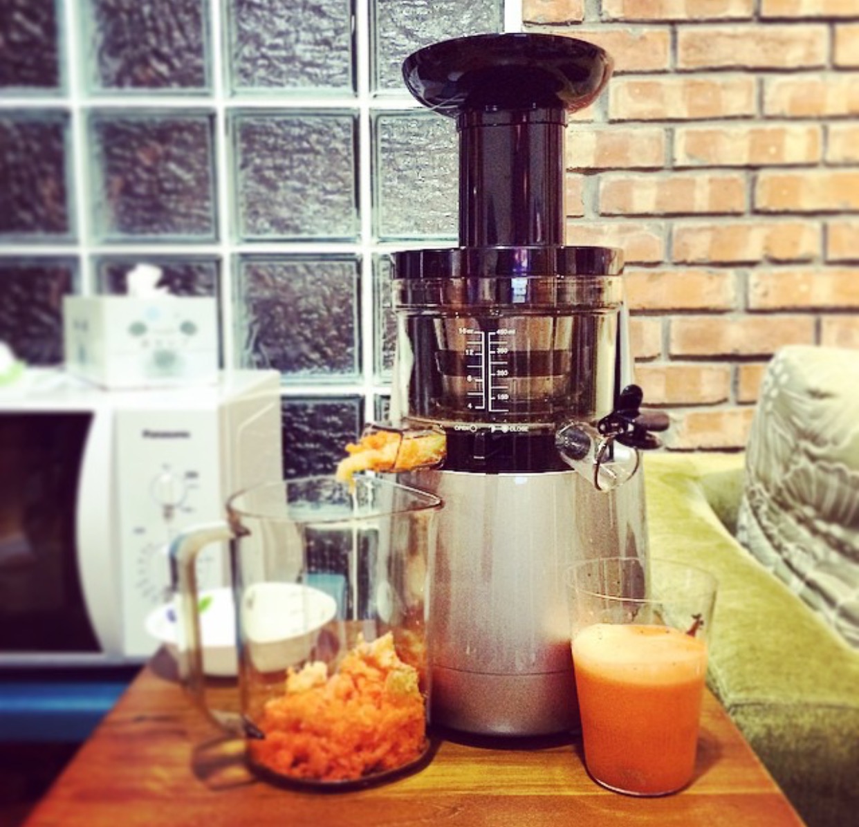 以每分钟80转的低转速螺旋杆方式先研磨后榨汁