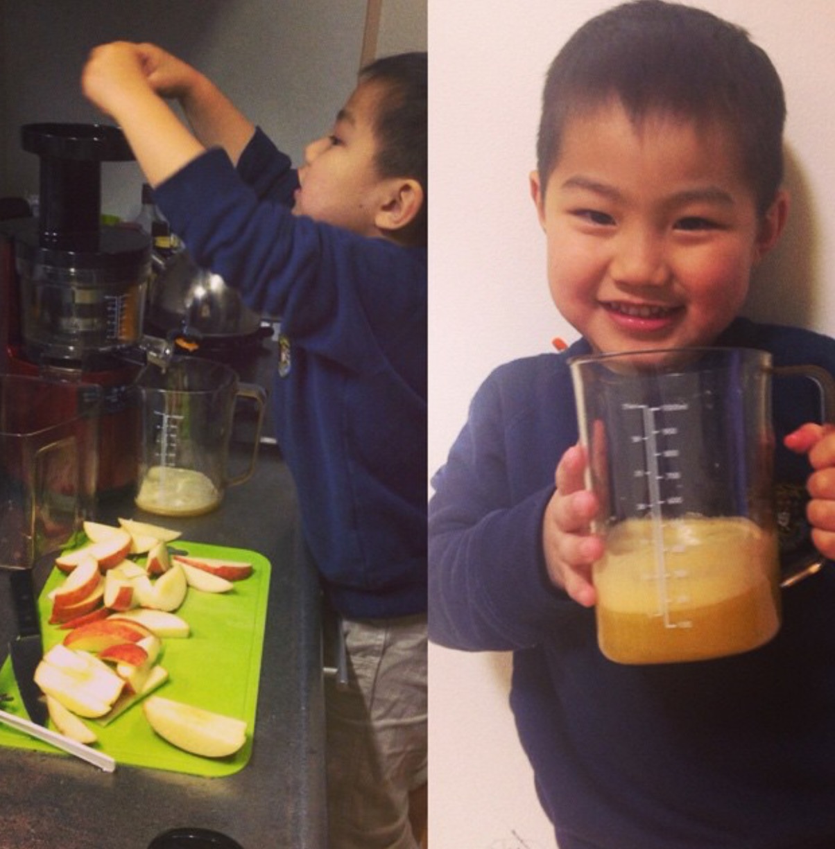 淘气的男宝宝都乖乖的自己做果汁喝哦