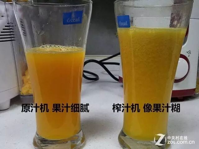 这也是为什么静放10分钟后,榨汁机榨出的果汁分离的很厉害,而用原汁机榨出的果汁还是一杯完整的果汁,丝毫不影响口感以及美观程度。