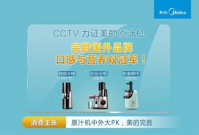 昨天,央视《消费主张》栏目再支招,从出汁率、口感体验、营养成分等三个重要指标出发,对中外知名原汁机产品进行对比盲测,结果显示:美的原汁机实力“吊打”国外品牌。