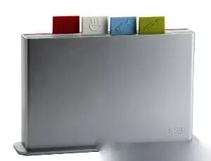 这个英国品牌的厨具的价格比我们平常对厨房用品的价格档位的认知高出不少(当然万恶的关税揩去了不少油),但是用了之后才觉得确实是很好的设计产品,很方便人使用,样子又好看。他们家的另外一套砧板也很好用,经典款大概500元左右,一套四块砧板,分别是切蔬菜、熟食、肉类、鱼类的,每块板上都有一个可爱的小标,告诉你这块板是干嘛用的,设计的简单大方又实用。就是下面这个图的: