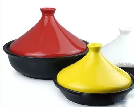 陶瓷材质,有个高高的帽子,摩洛哥人的发明,做菜不怎么需要加水,一层一层摆上就行了。锅盖越高的越好用。帽子太矮的,锅盖上有个孔用来透气的不正宗。