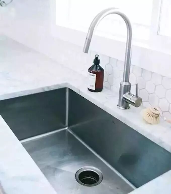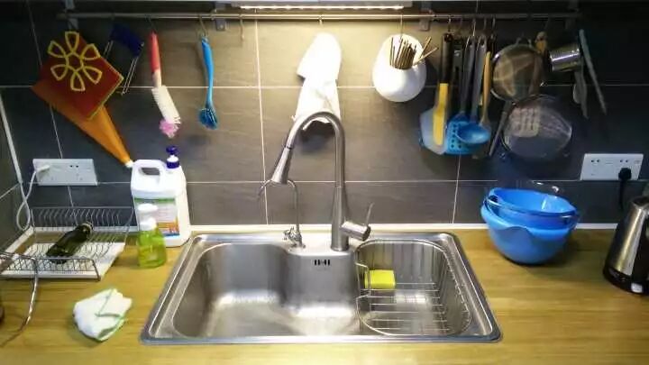 水槽靠近主排管道安装,可以减少堵塞的几率。水槽和台面要留个高度差,台下盆最好了,大手一挥,污水自流。