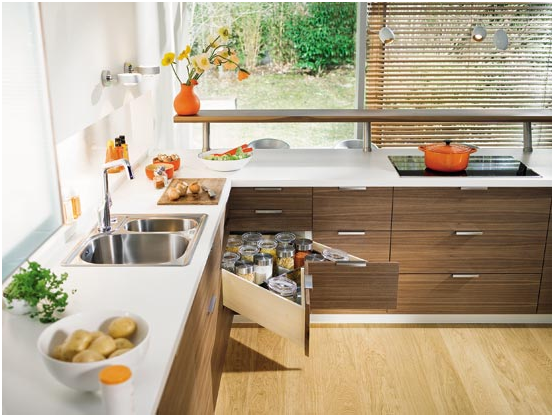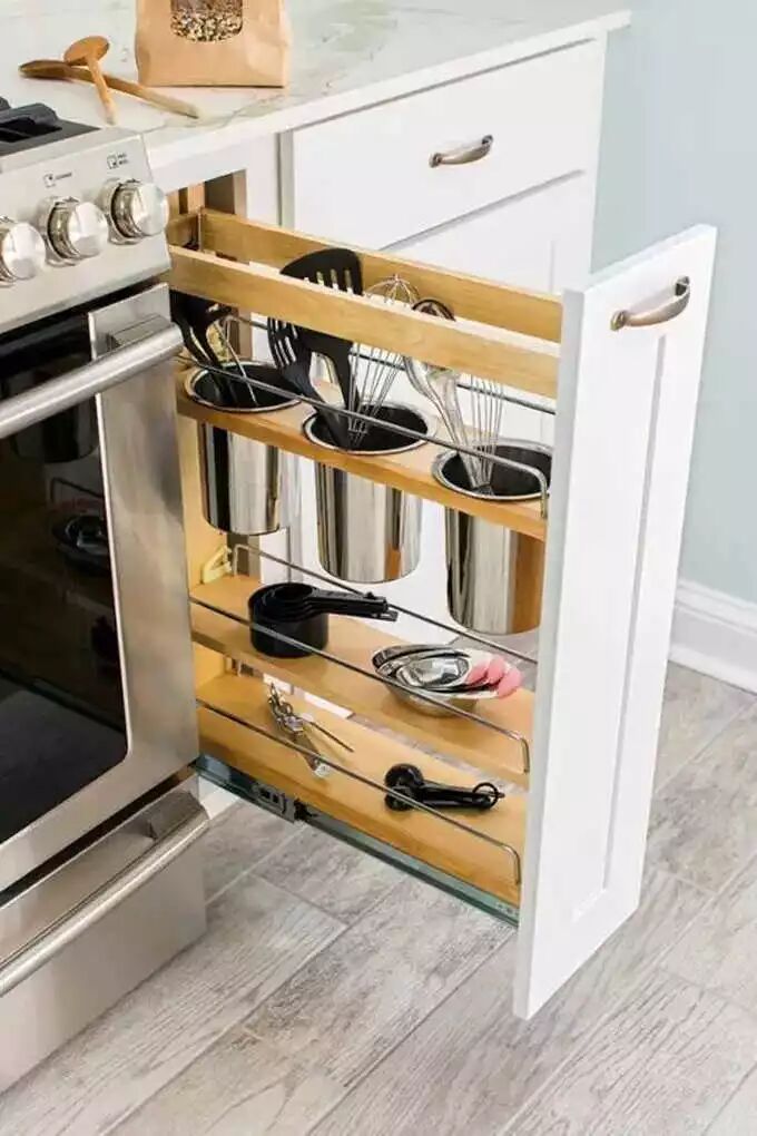 ▼利用窄缝和小空间,可以设置一些15cm~30cm抽取式窄柜