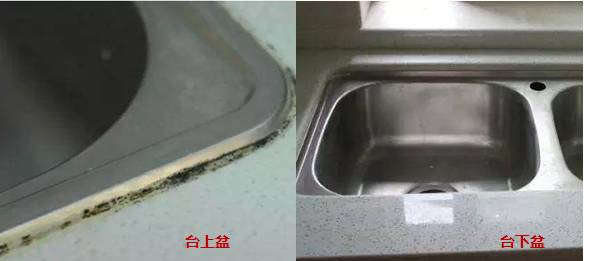 坚决要台下盆,理由:台面好搞卫生,可以看一下台上盆和台下盆的对比。但台下盆的安装难度较大,需要多交300-500元的费用,有的装修公司甚至还不支持此项业务。