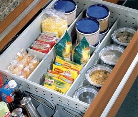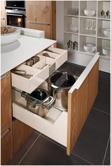 关于地柜的抽屉,这里要大小抽屉配合,增加格子抽屉数量便于分类收纳。