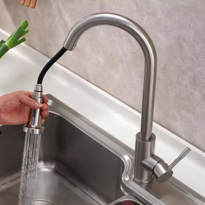 水龙头的话我说一下抽拉式水龙头,清洁水槽台面更加方便。