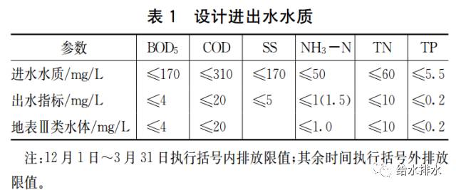 本工程设计中,对该厂一期工程近3年的进水水质进行统计分析,同时结合现状情况,既考虑到区域发展可能带来的水质变化,又避免因保证率取值过高而导致的处理设施和设备配置过大所造成的浪费,最终确定的进出水水质见表1。