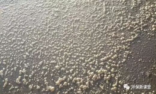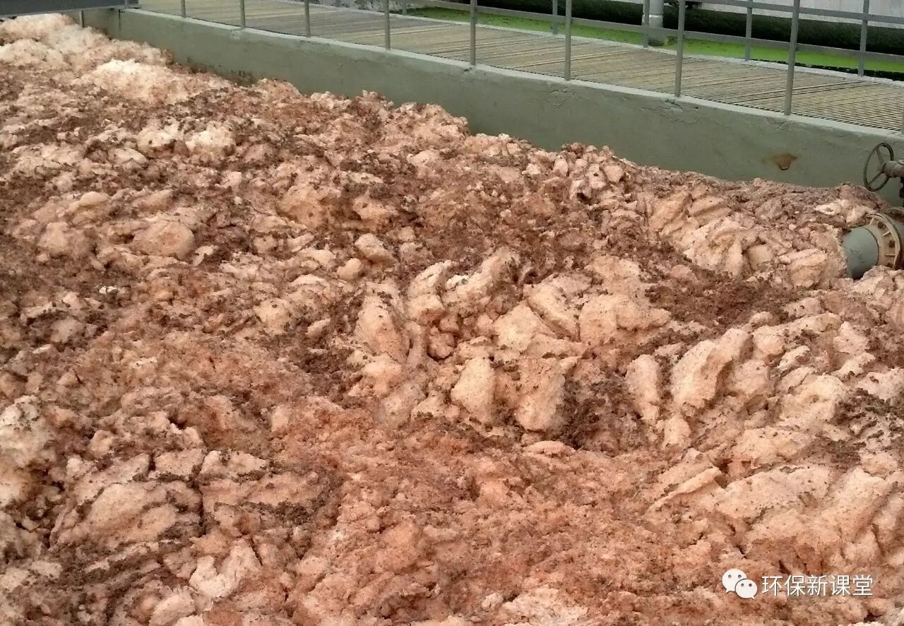 反硝化导致的泡沫或浮渣发生在缺氧环境下,如果发现缺氧池或者缺氧环境下出现混合着气泡的浮泥,或者二沉池有块状浮泥或者不连续的棕色泡沫基本可以判断是反硝化导致的,这里不做过多描述了。