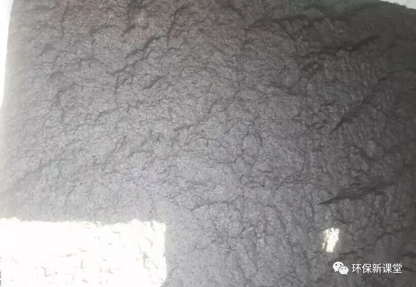 这是我第一次调试的经历,因为是半路出家,很多操作依赖于工具书上,因为污水处理先于排水单位的投运,所以水量很少,所以我把曝气池的曝气量开的很小,所以导致一部分污泥上浮,后来因为浮泥太多,领导让把曝气开大,部分浮泥在曝气较小的地方堆积不沉淀,不过经过时间推移浮泥慢慢变成灰白色泡沫了!如图。