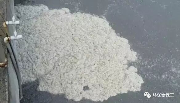 泡沫多为为脱氮工艺非正常态下加碱导致的泡沫,全程硝化反硝化工艺当中,硝化反应每利用1g氨氮(以N元素计)消耗掉7.14g碱度(以CaCO3计),因为进水碱度不够或者进水碳源过少,导致硝化过程中系统PH下降严重,低于硝化反硝化细菌的适宜PH值,这个时候就需要调节PH了,其中一个就是投加碱(石灰,烧碱,纯碱等)