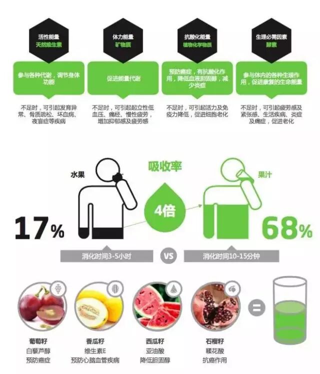 2012年,WHO (世界卫生组织)公布数据,在全世界20岁以上的成人中,14亿人超重,其中5亿人是肥胖,而这正是居世界死亡第一位的心血管疾病的主要致病因素。现代人,吃得更多更好, 但如果没有均衡地摄取身体所必需的营养素,反而会危害健康。为了解除现代人的营养不均衡问题,在欧洲、日本、美国,约26,000名志愿者进行了饮食习惯调查。结果表明, 摄取富含天然维生素、矿物质及纤维质的水果和蔬菜显得尤为重要,充分食用蔬菜和水果,可以有效预防心肌梗死,及预防癌症、成人病及各种疾病。虽然摄取果蔬对人体健康非常有益,可比起生吃蔬菜和水果,将其研磨成原汁喝,吸收量会提高四倍。