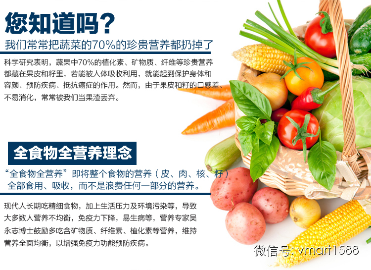 vmart多功能调理机能帮助你从全营养食物中极尽摄取营养素,从中获得营养增效作用、
