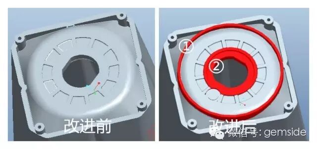 改进点2:底座中间轴处增加一个密封圈槽位,