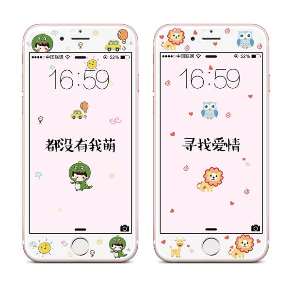 卡绮苹果6/6s钢化膜4.7寸卡通全屏玻璃膜