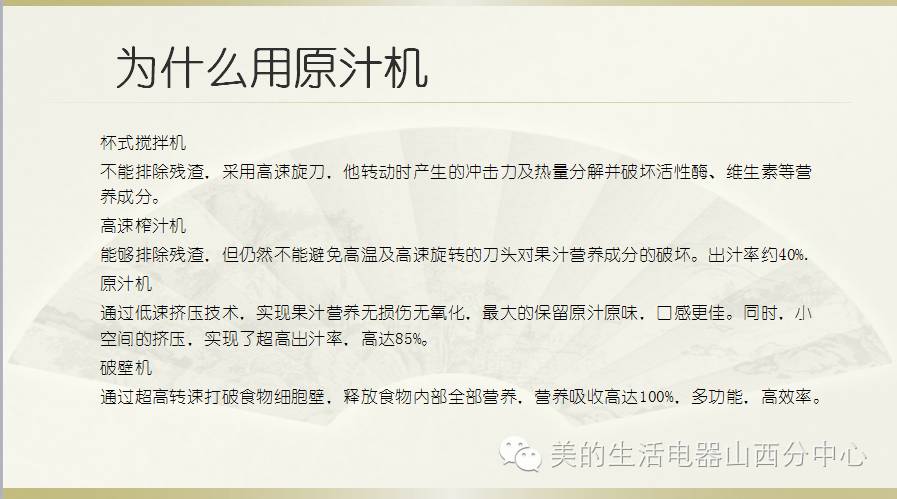 夏季到了,又到了大口大口喝果汁的季节了。你知道美的原汁机可以给你带来怎样新鲜清凉的体验吗?你知道如何用原汁机做出更加漂亮营养的果汁吗?请认真阅读此文喔。