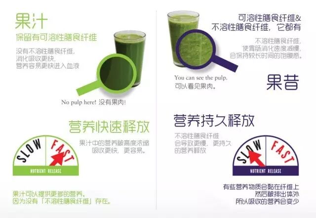 如果我们把破壁机搅拌出的「果昔」(Smoothie)和原汁机榨出的「果汁」(Juice)做横向对比,结果会怎样呢?