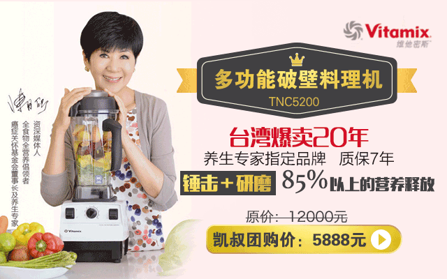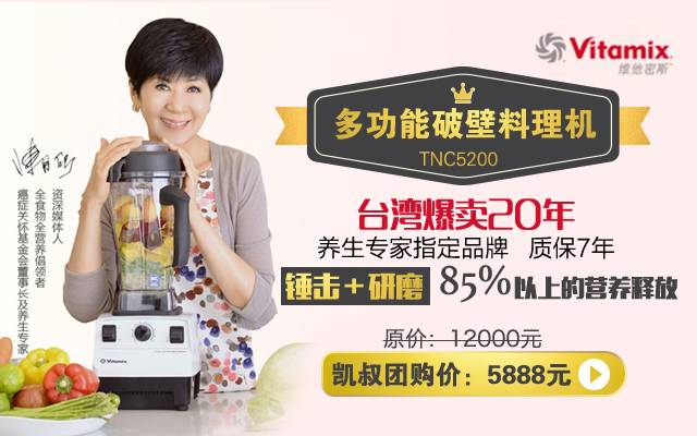 所以,凯叔这次为大家隆重推荐一台全家健康饮食神器——Vitamix维他美仕 TNC5200多功能破壁机。与榨汁机、原汁机、豆浆机、绞肉机等相比较,最大的优势就是:保持最佳口感,最大限度释放食材营养。用钱买了多少食材,就要吃进肚子多少营养。