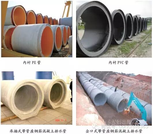 近几年来,随着国家市政工程建设和基础设施的发展,钢筋混凝土排水管管材形式在普通园涵管的基础上先后开发了带底座钢筋混凝土排水管、钢筋纤维混凝土管、内衬式钢筋混凝土复合管、耐腐蚀钢筋混凝土排污管,大口径电力电缆、异形预制箱函和矩形箱函等新型钢筋混凝土管材(见图);