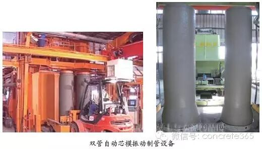 如:芯模振动成套制管装备经过不断的改进和完善,自动化水平提高,苏州科星混凝土水泥制品装备有限公司研制的Φ300-1500双管自动芯模振动制管设备已在山东、江苏、宁夏、河北等地正式投入生产使用。2015年一种集径向挤压和芯模振动优点的升芯式芯模振动制管机亦成功研制,即将投入使用。