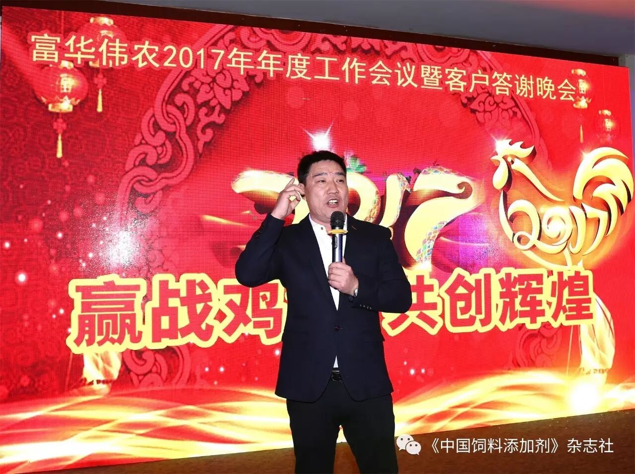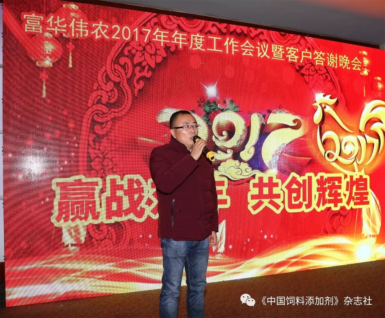 本网讯:2016年12月30日,富华伟农农牧科技公司2017年年度工作会议暨客户答谢晚会在济南黄金宾馆仕湾渡假村召开。参加年会的有北京富华伟农公司、山东富华伟农公司、昆明富华伟农公司、青岛富华伟农公司、沈阳富华伟农公司管理、技术及生产人员,另外邀请公司合作伙伴共享年会盛典。中国饲料添加剂杂志社主编、。