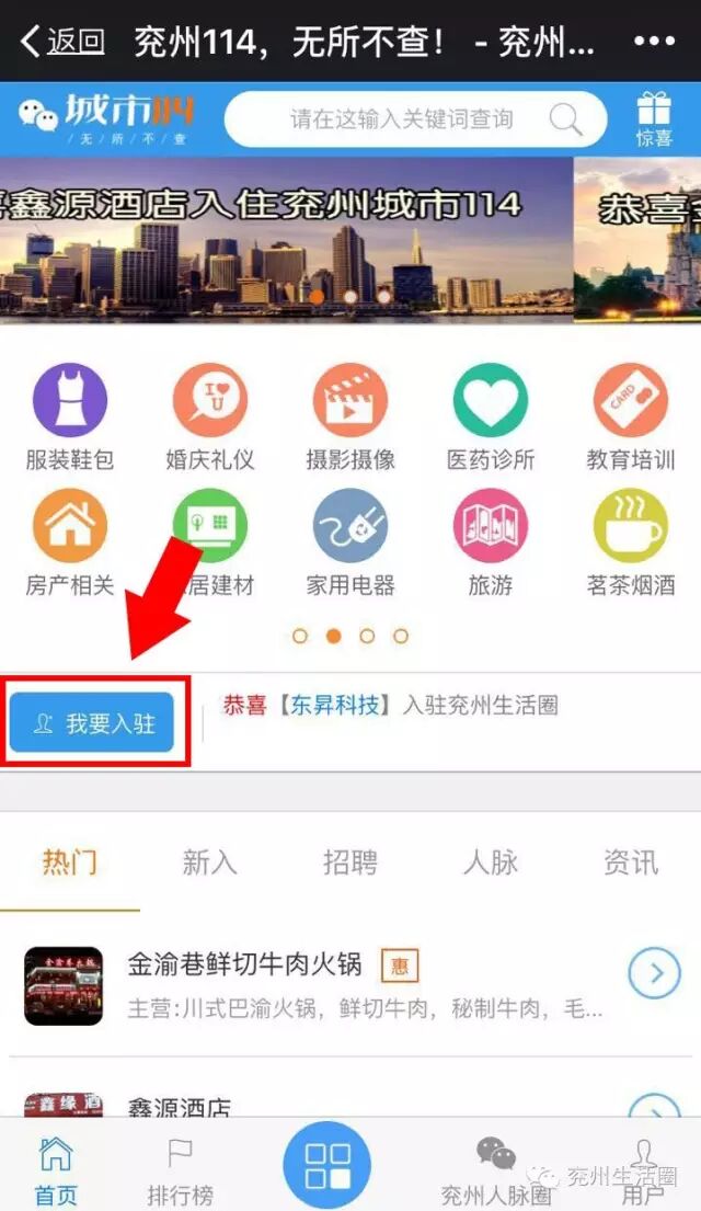 1.进入“兖州生活圈”的微信公众平台(微信号:yanzhouba),点击兖州114