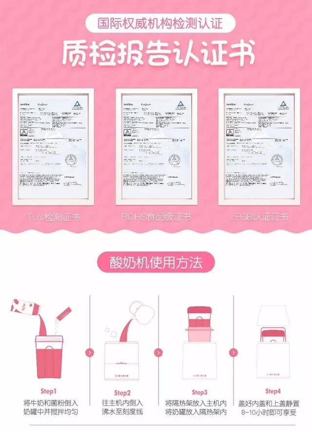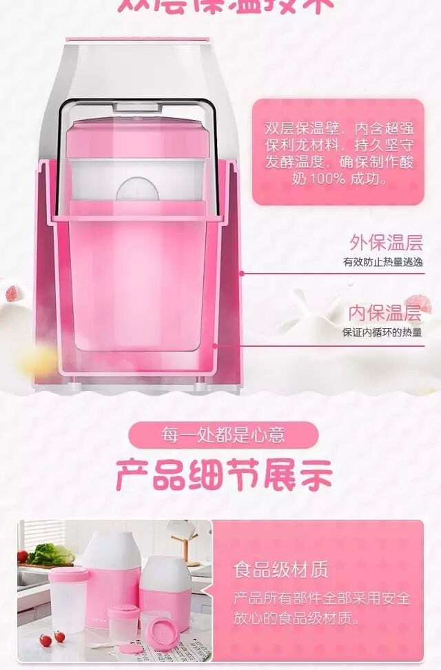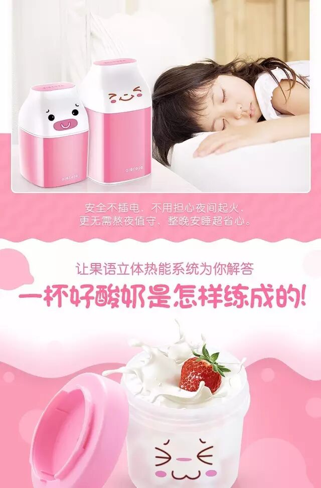 果语秉承健康美食自己做的理念,研发出无需用电的全自动酸奶机,整个制作过程只需8~12个小时左右,并且可以让乳酸菌充分发酵,做出的酸奶活菌量高!并且机子具有恒温的作用可以用来保温,做米酒,纳豆,果醋,酵素等各种用处!奶酪机使用的是100目的304不锈钢滤网,可以做出更细滑的奶酪!果语酸奶机,奶酪机采用食品级原生塑料,真正让利给消费者,一款深受妈妈和宝宝们喜爱的酸奶机!一款只买对的不买贵的酸奶机,定会给你不一样的酸奶,奶酪!