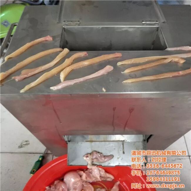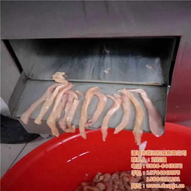小型鸡柳切丝机,小型切肉条机哪家好,鸡柳切条机鸭胸肉切丝机,切的肉丝粗细是可以加工刀具的,原料肉的温度是麻冻状态,因为鸭胸肉的纤维软。我们厂的刀具是一体的,可以整体拆下来清洗,小型切肉条机价格,省事。也可以切鸡肉,包括丁状,片状,丝状,条状。刀具可以整体更换。欢迎您来厂房试车。