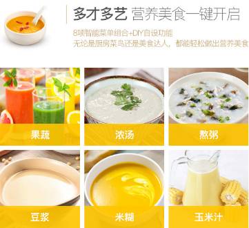 一台完美的破壁机,必须可以加热,可以加热,可以加热!(重要的事情说三遍)。这样,煮豆浆的时候再也不用提前将黄豆煮熟;随便几种杂粮黑米加水放进去直接就能出来一碗热腾腾的杂粮米糊;它甚至可以做鱼汤做鸡汤玉米汁芝麻酱……从早餐的一杯浓稠新鲜豆浆开始,到晚餐的营养杂粮粥,从一日三餐到下午茶甜点,它都可以陪伴着我们,几乎全能。