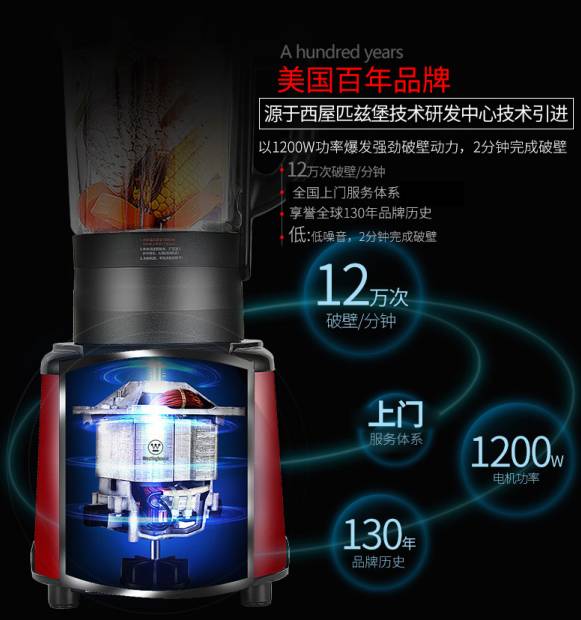 西屋百年技术电机——1200W强劲电机,12万次破壁/分钟