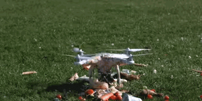 无人机又被土豪玩家们开发出了新玩法:变身水果忍者,开启“强力搅拌机模式”!