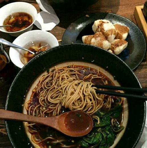 店子装修碗筷都很复古,有老重庆的感觉。值得一说的是这家豌豆面做的真的好吃,辣的恰如其分,有一点点麻但是不呛,很提味口~