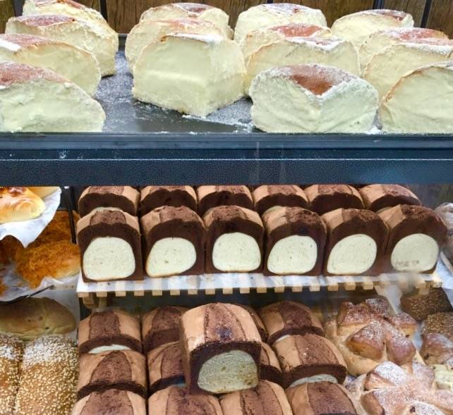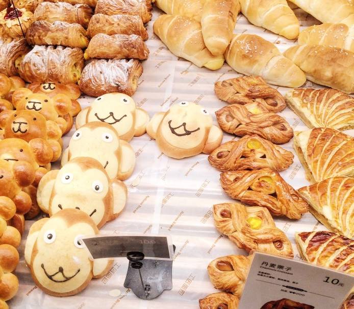 面包的王国!满眼看着都好像能感受到香软可口~面包品种多得一眼看不过来,有切好的小块面包给顾客试吃~