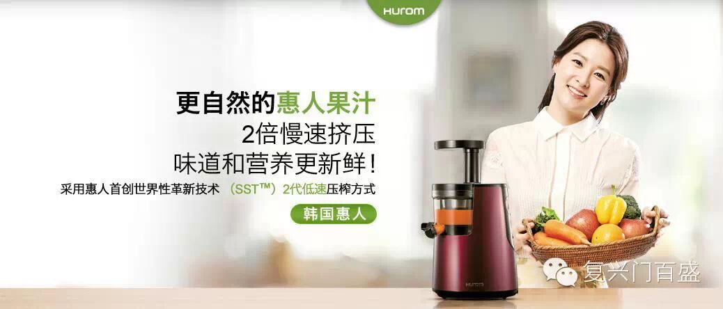 新店入驻,韩国惠人原汁机为您带来方便、健康的饮食习惯,特此推出8.5折优惠活动,欢迎前往北楼八层挑选。