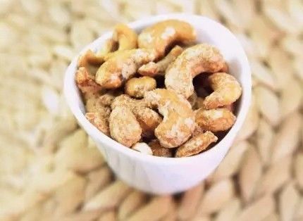 腰果的吃法甚多,既可略加盐巴简单炒制、亦可烘焙或过滚油,还可以烹以入菜,更是可以生吃,在追剧时是不二之选。但是,腰果不易多食,每次10-15粒即可。
