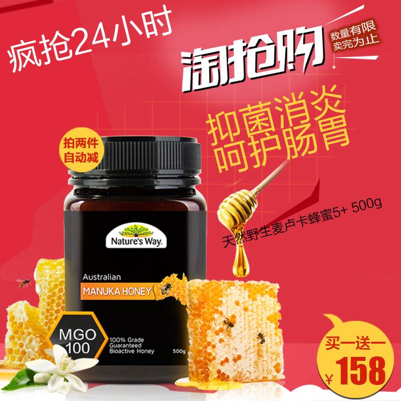 【买2免1,Nature s Way野生麦卢卡蜂蜜,麦卢卡值为MGO100,相当于UMF5+。原价159,买2件,实付1件,领券再减5,有关税。这牌子常喝高端蜂蜜的自然知道,不介绍了】复制这条信息,打开手机淘宝 即可看到¥fL90ZHh4aZX¥