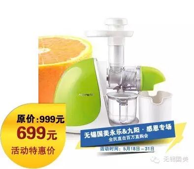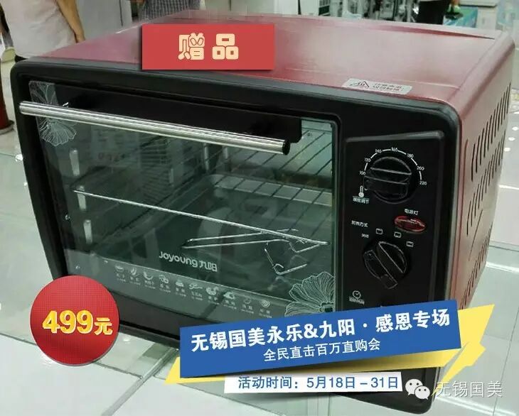 购九阳原汁机一台即获得赠品价值499元30升的九阳电烤箱一台。
