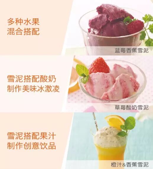 时值炎夏,大家还能用专用部件制作雪泥呦。将冷冻后的果蔬,搭配酸奶、果汁等美味食材,不仅健康,而且好吃到飞起,体会最凉爽的快乐!